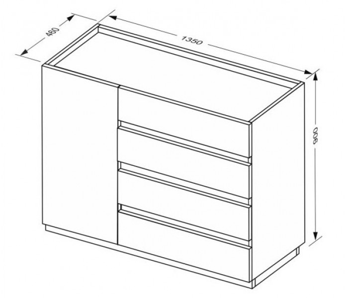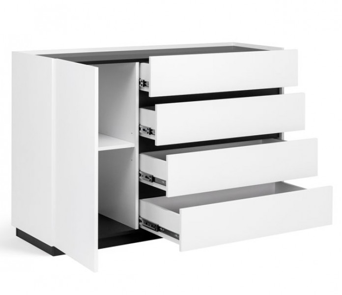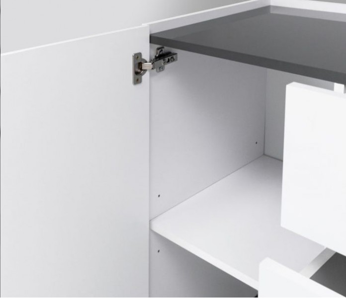 - Комбинация дверей слева и четырех ящиков справа — оптимальная функциональность для хранения