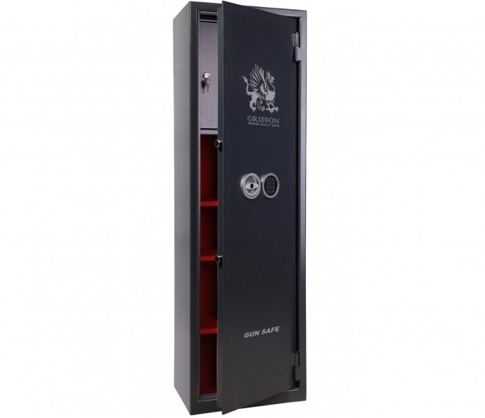 Сейф для оружия "ПАРИТЕТ-К" Griffon G.450.L.E - это сочетание максимальной простоты, практичности и надежности. Толщина двери сейфа составляет около 6 мм (4 мм для моделиG.300), толщина корпуса – соответственно 3 мм и 2мм. Хромированные активные ригели сейфа функционируют в горизонтальном и вертикальном режимах, а блокирующая система представлена встроенными кодовым и электронным замками. Сейф оборудован специальным отсеком для сбережения патронов, что повышает комфорт его эксплуатации по назначению. Сейф предназначенными для хранения оружия в количестве 4 штук высотой до 124 см.