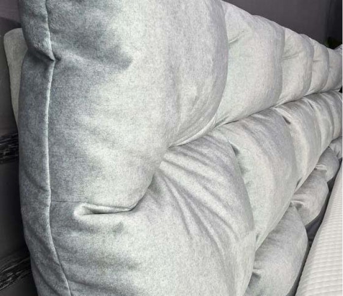 Мягкое изголовье кровати Кемер выполнено в виде объемных и довольно широких вертикально простроченных линий, создавая элегантный и лаконичный внешний вид. Обивка изголовья излучает ощущение комфорта и роскоши, придавая спальной зоне изысканное не навязчивое оформление.