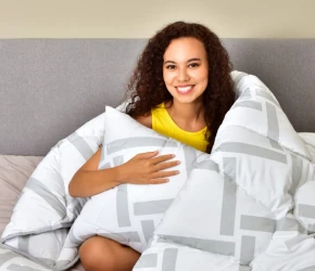 Нельзя не сказать о важности текстиля для сна, в который входит пастельное белье и одеяло. Качественный спальный текстиль обеспечит хорошую терморегуляцию, позволит телу дышать, не потеть, но, в тоже время, сохранять тепловой баланс на должном уровне.