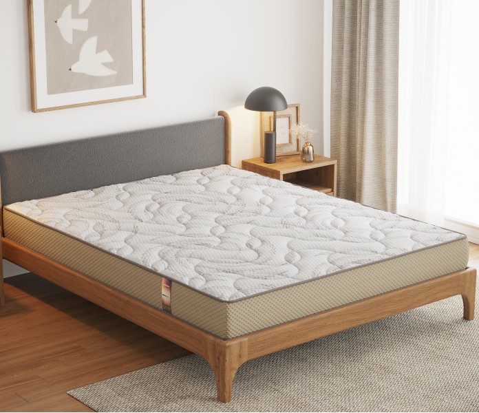 Матрасы серии отличаются продуманным и эстетическим дизайном. Верх выполнен из мягкой эластичной трикотажной ткани с выразительной глубокой стежкой, подчеркивающей комфорт и объем изделия. Боковые части в спокойном бежевом цвете придают сдержанную элегантность и легко сочетаются с любым интерьером. Приятная на ощупь поверхность создает чувство уюта и уверенности еще до того, как вы погрузитесь в сон.