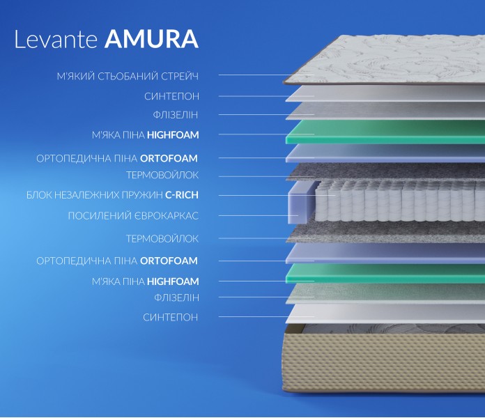 Матрац ортопедический двусторонний безпружинний Highfoam Levante Amura / Амура