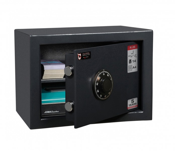 Сейф офисный "ПАРИТЕТ-К" R.26.C - это офисный сейф с полкой, в котором можно хранить ключи, документы, чеки или наличные деньги и другие ценности, замок - механический код. Особенности сейфа - cистема запирания 2 ригеля, внутренние петли, которые вращаются и их невозможно перепилить. Масса сейфа 14 кг. Есть возможность крепления сейфа к стене. "ПАРИТЕТ-К" осуществляет гарантийное, сервисное обслуживание продукции. Доставка по Украине бесплатная, установка и монтаж осуществляется за дополнительную плату.