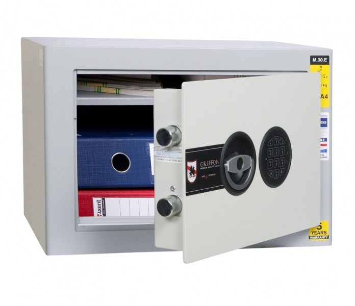 Сейф мебельный "ПАРИТЕТ-К" Griffon M.30.Е -   это облегченный офисный сейф с полкой, в котором можно хранить ключи, документы, чеки или наличные деньги, замок - электронный код. Особенности сейфа - ригельная система запирания. Масса сейфа 24 кг. Есть возможность крепления сейфа к стене и полу. "ПАРИТЕТ-К" осуществляет гарантийное, сервисное обслуживание продукции. Доставка по Украине бесплатная, установка и монтаж осуществляется за дополнительную плату.