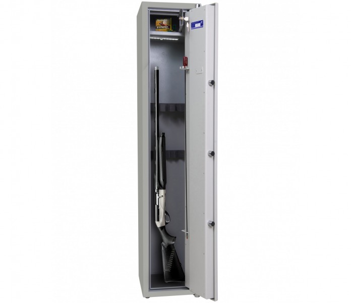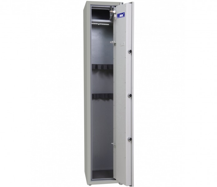 Сейф для оружия "ПАРИТЕТ-К" Griffon GE.300.E - это взломостойкий сейф для оружия, который сертифицирован в Европейской лаборатории ECB-S и имеет сертификат класса S1 по стандарту EN 14450. И такие особенности: 1) антивзломная конструкция «крючок», которая не дает возможность открыть дверь острым предметом или отверткой; 2)толщина металла - 3 мм; 3)четырехсторонняя система запирания, активные хромированные ригеля вращающиеся, диаметром 25 мм; 4)стальные каленые легированные пластины для защиты от высверливания и выбивания замков и ригелей; 5)внутренняя петля-антисрез; 6)ложемент, который перемещается, под оружие с оптикой и съемный магнитный ложемент (устанавливается на любую удобную высоту); 7)сейф предназначенными для хранения оружия в количестве единиц 5 штук высотой до 145см.