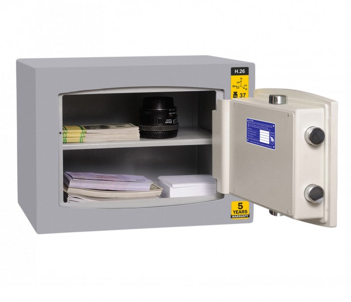 Сейф взломостойкий "ПАРИТЕТ-К" Griffon H.26.K - это взломостойкий сейф с полкой, в нем можно хранить ключи, важные документы, чеки или наличные деньги и другие ценности, замок - ключ. Особенности сейфа - 1 полка, 1-й класс взломостойкости, двери сейфа оборудованы ригельной системой запирания - 2 хромированных ригеля. Масса сейфа 37 кг. Есть возможность крепления к полу и к стене. "ПАРИТЕТ-К" осуществляет гарантийное, сервисное обслуживание продукции. Доставка по Украине бесплатная, установка и монтаж осуществляется за дополнительную плату.